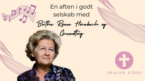 Syng dig glad med Grundtvig. Tidligere kirkeminister Birthe Rønn Hornbech vælger sange og salmer og begrunder sine valg og fortæller om Grundtvigs liv og virke. Der synges sange og salmer, der belyser multimennesket Grundtvig både som præst og salmedigter, som politiker og debattør, som folkeoplyser, ægtemand og meget mere. Kom og vær med til en festlig aften.
