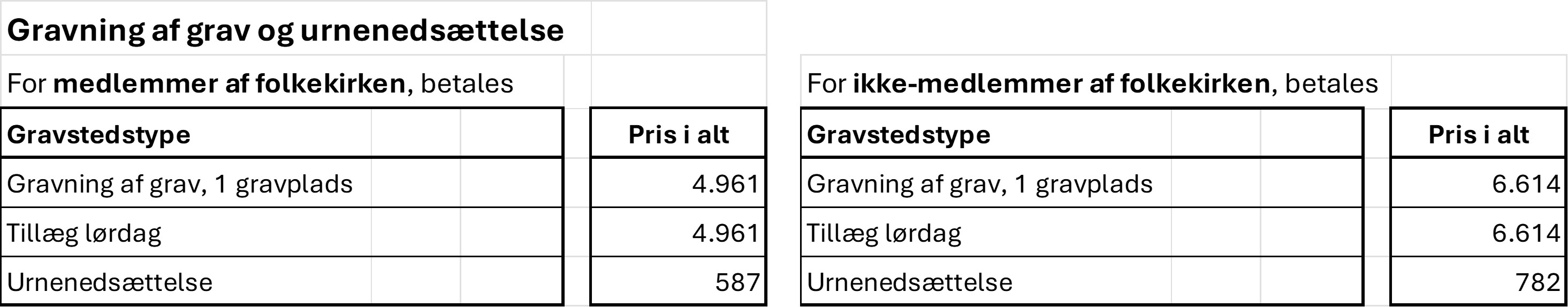 Kirkegårdstakster for Dragør kirkegård 2025